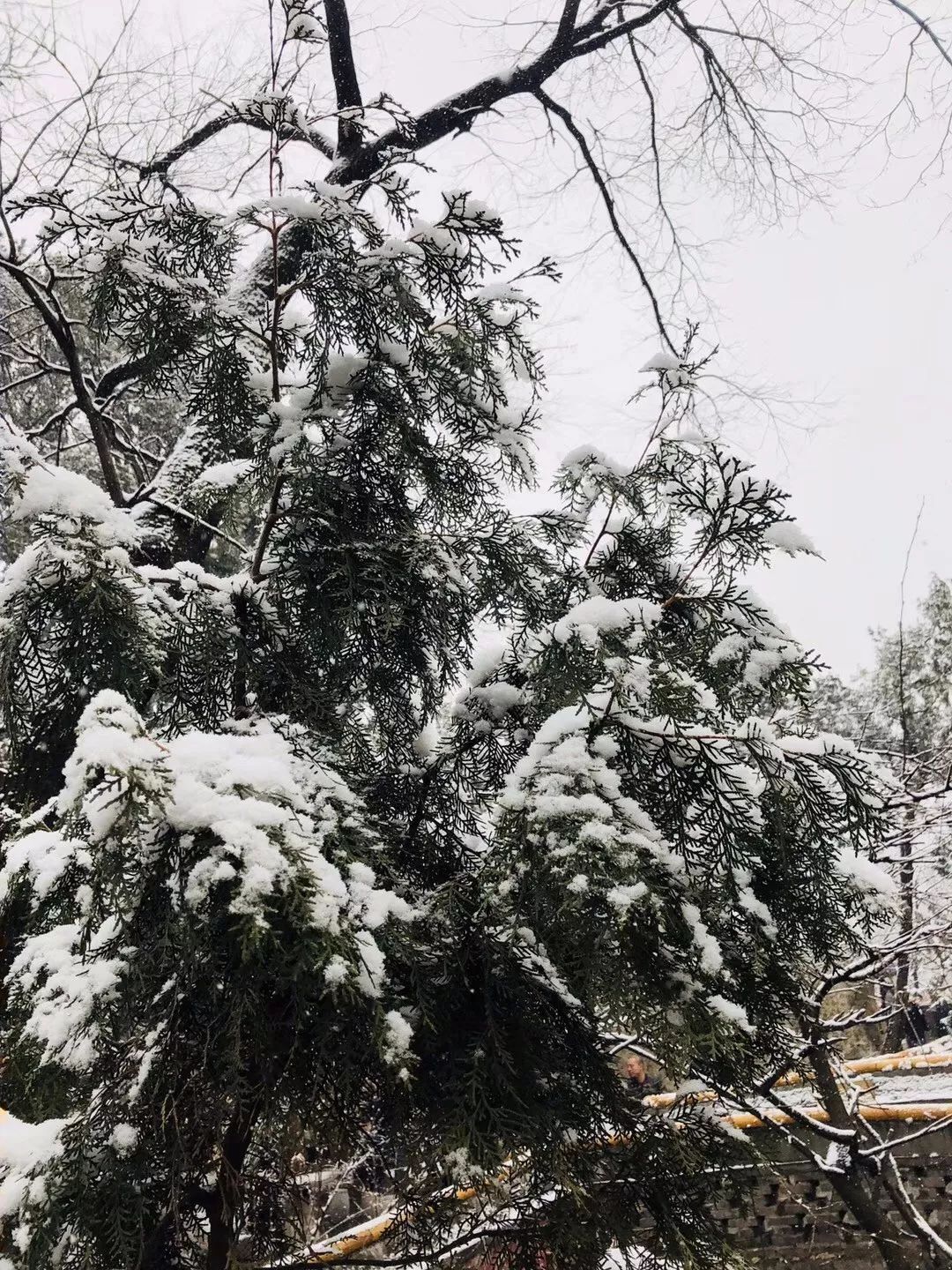 庙宇幽静肃穆,透出几丝寒意,但这却丝毫不影响寺中的古树名花散发出勃勃生机,青松傲霜斗雪、巍然屹立,翠竹四季常青、不惧严寒,让森严的建筑间增添了几抹绿意。