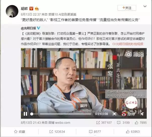 《光明日报》采访导演张黎,经典言论引明星热议并转发