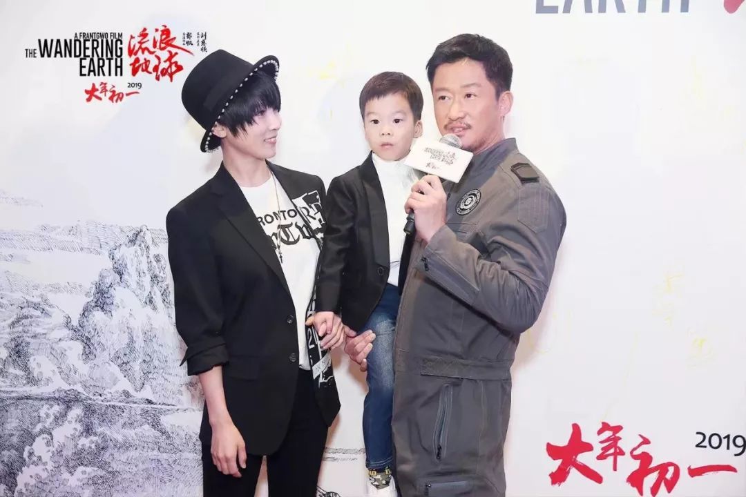 郭帆导演一家三口与刘慈欣、制片人龚格尔亮相红毯