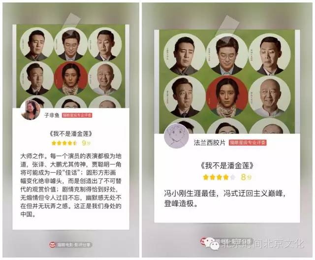 作为电影《我不是潘金莲》联合出品方,北京文化副总裁、摩天轮文化传媒总经理杜扬,北京文化高级副总裁彭佳瞳受邀前往首映礼,杜扬女士在红毯上特地感谢了当初能够开发《我不是潘金莲》这个好项目。她认为在商业片横行天下的时代,这部电影是部能让人安静下来看完的影片,“在把恶搞当喜剧的当下,《我不是潘金莲》用真正的黑色幽默表达了一种平等对话的喜剧精神。”