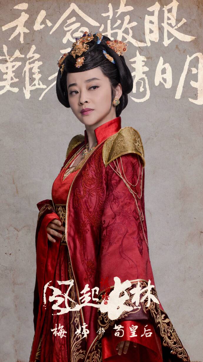 梅婷在剧中首次出演反派荀皇后,掌握后宫大权,虽是一介女子,却有男子难有的气概与心机,暗中与濮阳缨强强联手,欲意扫平各种障碍。定妆照一身正红宫装,搭配金玉点缀,眼神凌厉,神情沉郁,霸气扑面而来。背景上的“私念蔽眼,难见清明”内宫的明争暗斗跃然而出。