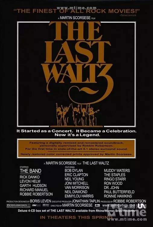 《最后的华尔兹》是导演马丁·斯科西斯1978年音乐纪录片名作,从Bob Dylan、Neil Young到Eric Clapton、Van Morrison,演出阵容一流。本片是美国摇滚乐队“The Band”成员在一起走过十多年的历程后,在旧金山作告别演出音乐会的纪录片,有多位大腕级摇滚歌星客串。