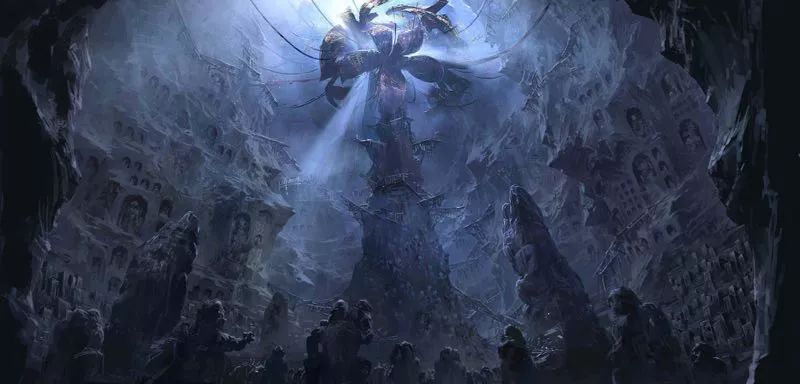 如何在极窄的色域内制造立体的概念则是海报创作过程中的最大难题。“阴阳之战”概念海报中的一切事物皆由元气化生,在只有黑白二色的前提条件下,不仅要展现大量具有立体感的形象元素,同时还要兼备阴阳二气流动变化、对立统一的韵味,但创作经验丰富的徐天华最终还是从古代浮雕和水陆画等中国传统艺术中找到了破题之法。