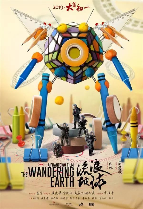 郭帆导演曾讲道:“我希望孩子们能够看到我们自己文化背景下的科幻片,可以在他们的心中埋下一颗想象力的种子,《流浪地球》也许不完美,但是他们可以看到一个大致的轮廓,然后可以一步一步释放想象力往前走。“因此电影《流浪地球》特别发布一组想象力版海报。海报中的未来世界变成了色彩斑斓的文具、美食、农作物、烟花爆竹的天地,而“冒险小分队”成员则穿梭其中执行任务,画面反差强烈却萌点十足。