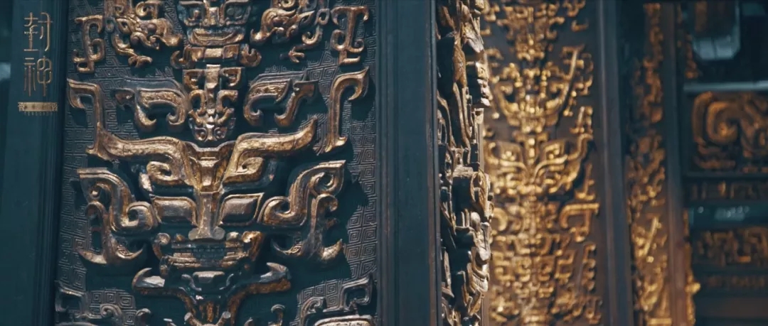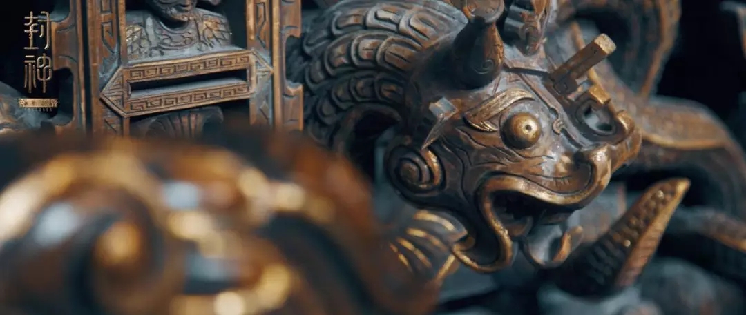 这些道具来自于《封神三部曲》的导演带领美术团队、概念设计团队、编剧团队遍访殷墟博物馆、青铜器博物馆等在内的十所商周历史、文物博物馆,记录下青铜器的美学元素,将商朝青铜器纹样重新进行组合创作,进而进行场景设计,由专门组建的由木工、泥塑工匠约800来人的专业手工匠人团队匠心打造,包括餐具、屏风等,每一件在彰显鲜明美学风格的同时保留了商周特色,集深厚文化与设计美感之大成。