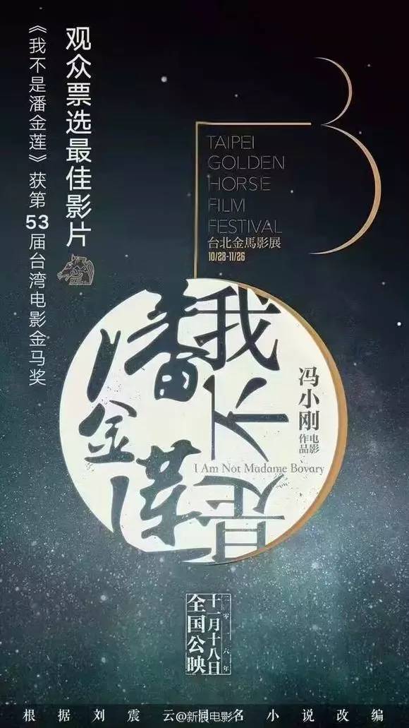 2016年11月26日,导演冯小刚在第53届台湾电影金马奖颁奖典礼上荣获最佳导演奖,而电影《我不是潘金莲》也于前一日获观众票选最佳影片奖。
